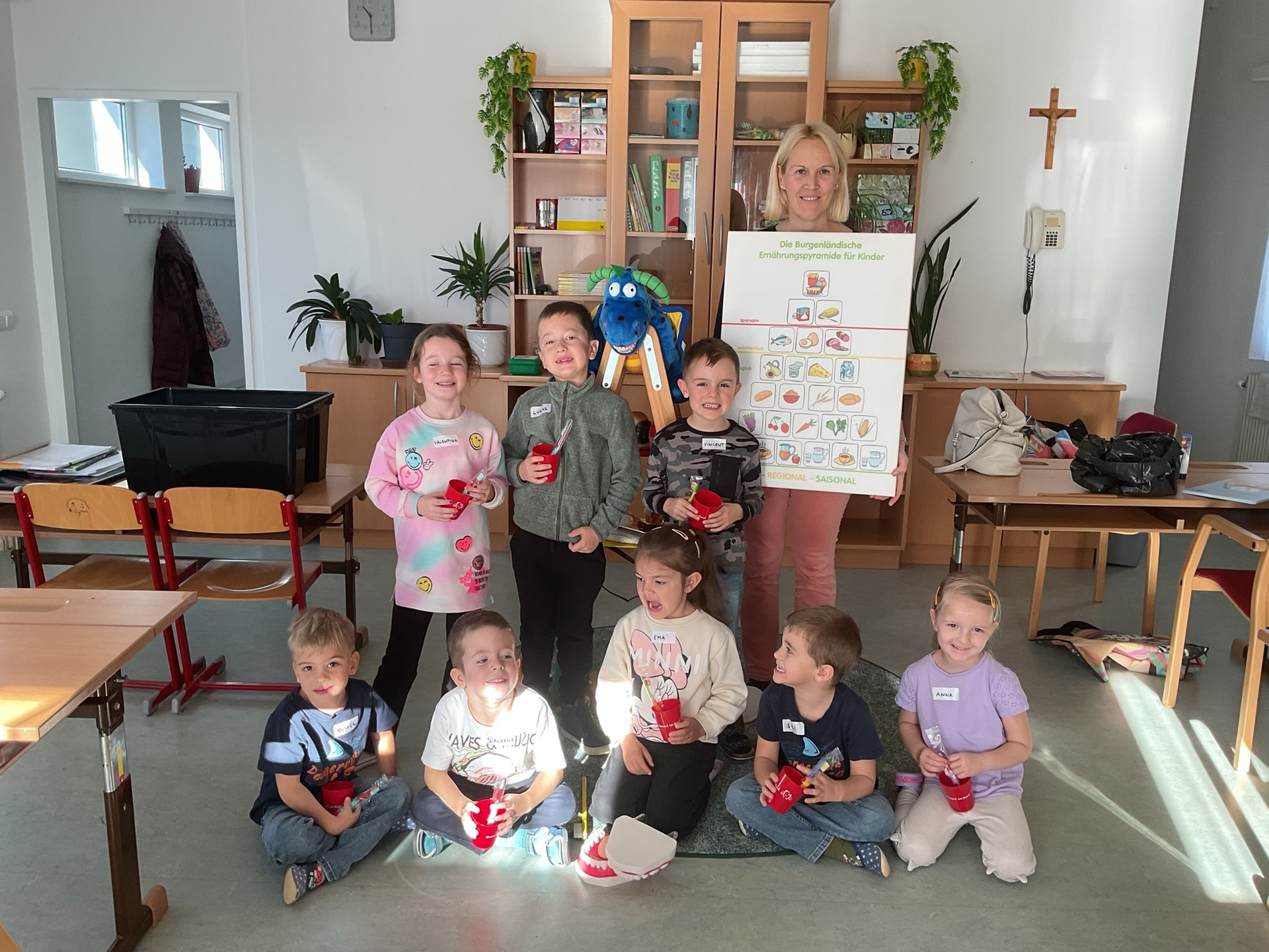 Als Dankeschön für das tolle Mitmachen, gab es für jedes Kind eine Zahnbürste und einen Zahnputzbecher.